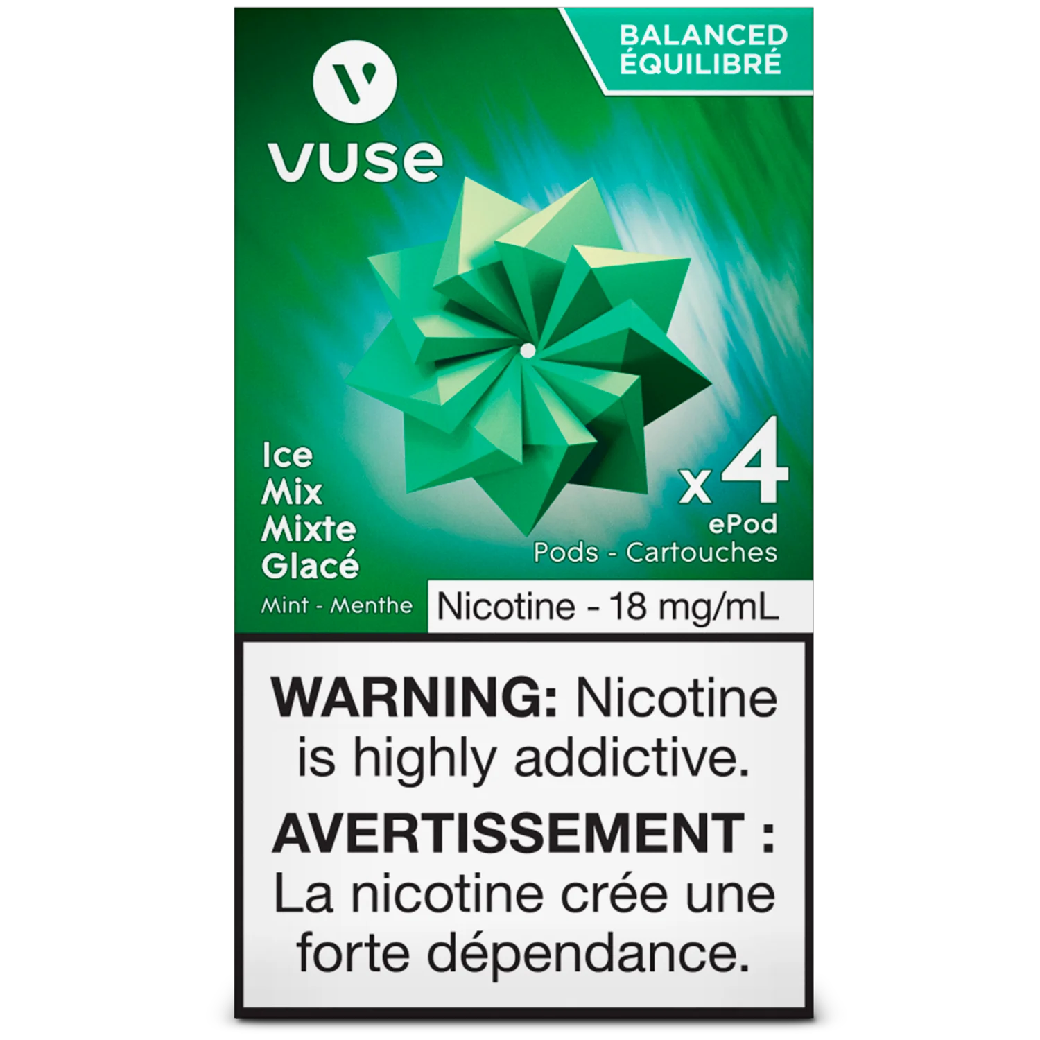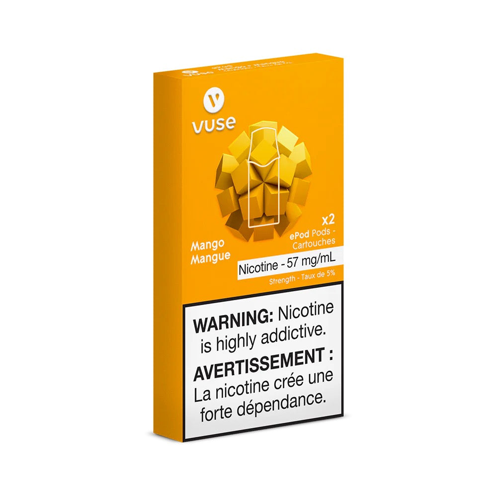 • Each Vuse vape pod contains 1.9 ml of e-liquid of vPro nicotine salts with nicotine variations by % or mg/mL (w/w)